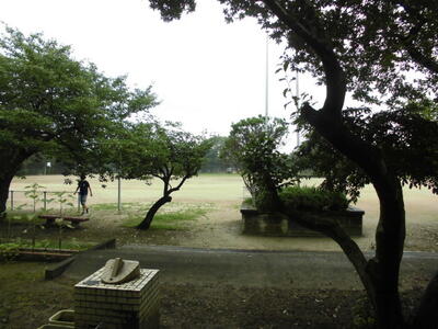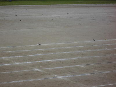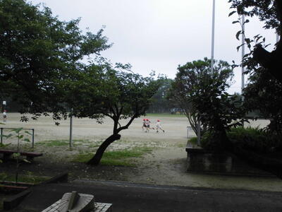 ↓ 日々の除草のおかげで、校庭のトラック内は、夏のこの時期でも、雑草もなくきれいな状態です。