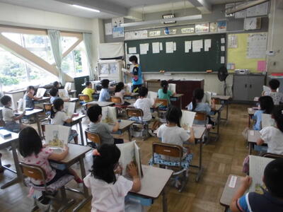 今日の学校は5時間授業です。子供たちが授業にしっかり取り組んでいます。