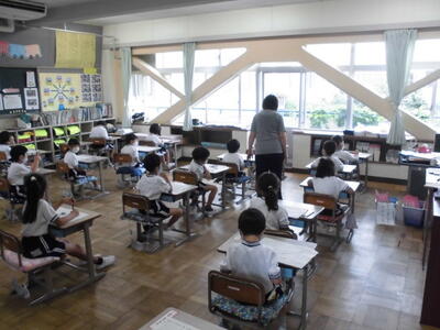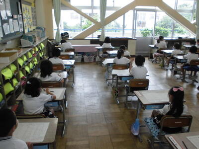 先ほど、9:45ごろ、緊急地震速報が発令されました。全校児童は、その場で身を守る行動を取りましたが、大きな揺れは来なかったので、全員無事です。現在(9:55)は、教育活動を再開しています。