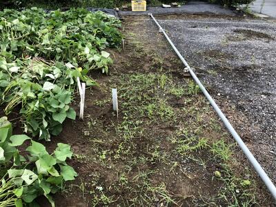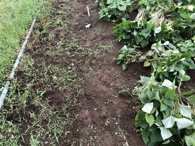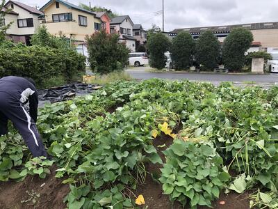 本日は、校長先生はじめ3名の先生で、雨の合間をぬって、サツマイモのつる返しをおこないました。サツマイモのつるがあちこちに根をはりめぐらしてしまうので、地中のイモを成長させるために、大事な作業です。