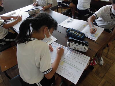 午後の授業の様子。5年生は、まとめテストに取り組んでいました。