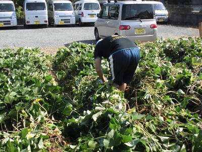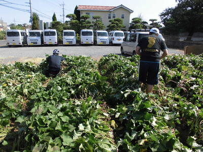 昨日の放課後、学校のサツマイモ畑のつる返しをおこないました。暑い日が続いていますが、サツマイモ畑も、先生方の除草作業や水やり、栽培ボランティアの方の管理などで、順調に育っています。