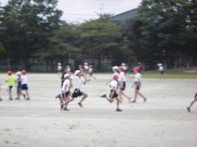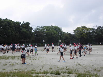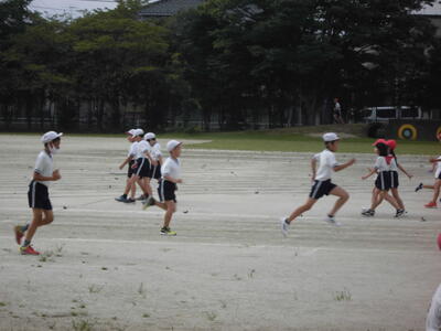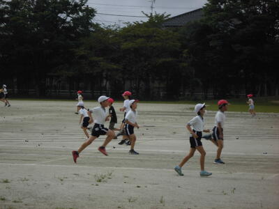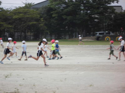 今日の朝は、「一運動(いちうんどう)」。子供たちが、登校後に自主的に校庭に出て運動する時間です。子供たちが、久しぶりの校庭を力いっぱい駆け抜けていきます。