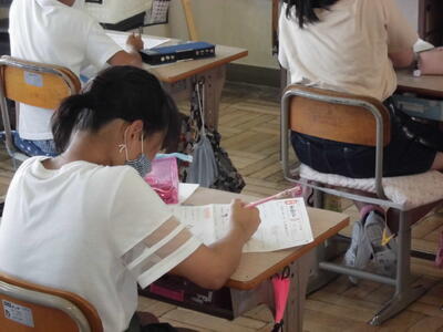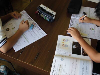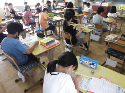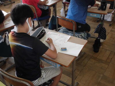 午後の授業の様子。5年生は、まとめテストに取り組んでいました。