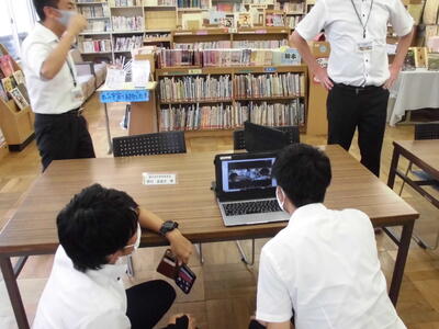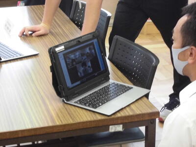 ( ↓ 他校の先生も含めて、インターネットによるリモート会議をおこないました。この研修は、今後の学校の教育活動にいかされます。)