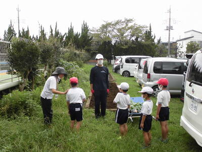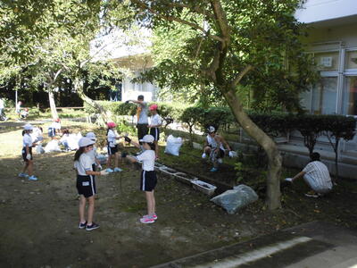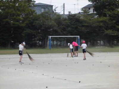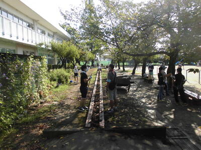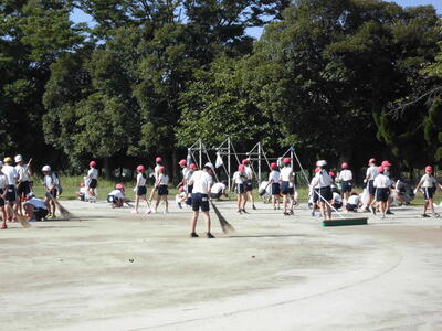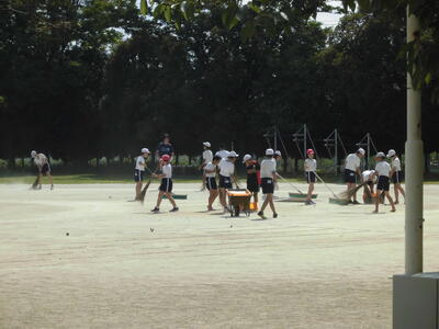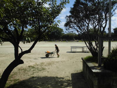 参加の皆様、本日は来校いただき、また暑い中での作業、誠にありがとうございました。9月下旬には運動会も予定され、その練習も始まります。きれいになった校庭を子供たちが元気に駆けていくことと思います。