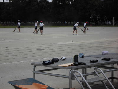 ( ↓ 朝の全体練習。全体の動きなどについて確認しました。)