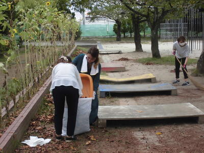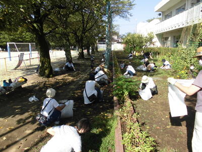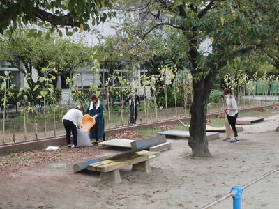 本日はお花ボランティアの方の活動日でした。栽培委員会といっしょに環境整備をしていただきました。