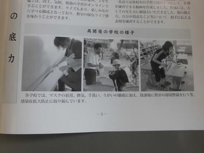 その中で、「再開後の学校の様子」として、各学校では臨時休校があけたあとも、日中や放課後、先生方が日々、消毒作業など感染症拡大防止に取り組んでいる様子が紹介されています。そこで使用されている写真には本校の様子が写っています。