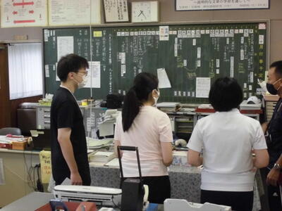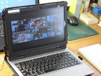学校内でも、パソコンやタブレットを使用して、リモートでの遠隔会議をおこなっています。本日は、校長室にて校長先生が、他校の校長先生方とリモート会議をおこないました。タブレットでオンライン・ミーティングのアプリケーション・ソフトを使用して、遠方に出向くことなく会議や情報交換が進んでいます。