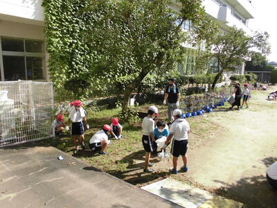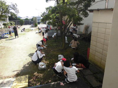 本日9月5日(土)は授業日です。一校時の時間帯で、保護者の方に来校いただき、子供たちとともに親子除草をおこないました。天候もよく、親子除草は予定通り、実施できました。