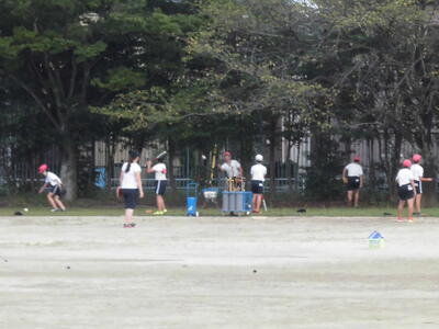 朝のうちに降っていた細かい雨は、さわやかタイムの時にはやみました。子供たちは、元気に校庭を駆けています。