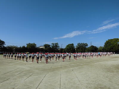 3連休明けの学校です。本日は、朝まで降っていた雨もあがり校庭も乾いたので、全校での運動会練習を朝から1時間目にかっけておこないました。予報では、明日・あさっての天気がよくないので、運動会前に全校で校庭で練習できるのは、今日が最後かもしれないと、みな集中して練習に取り組みました。