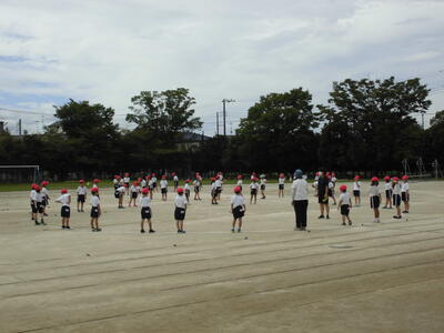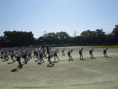 最後に全員で整理体操をして終わりました。さわやかな汗が光りました。