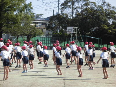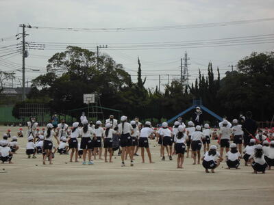 運動会にむけて、3・4年生の合同練習です。ダンスの前後の動きなどを確認しています。