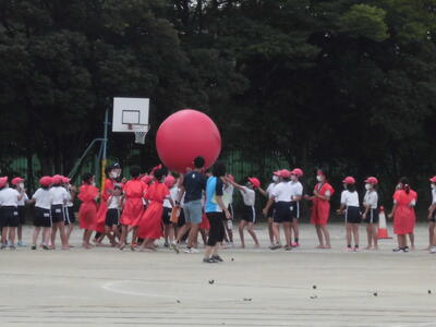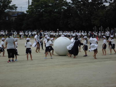 10:05 応援合戦に続いて、全校児童による大玉送りです。