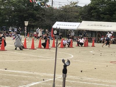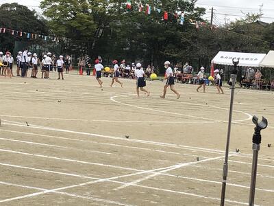 10:35 プログラム9番、3・4年生による、ボール運びリレーが始まっています。
