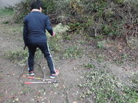 4年生が、総合的な学習の時間で小渕小の環境を調べています。その学習の一環として、自分たちで環境をきれいにしようと、本日も前回に続いて、校庭の樹木の落ち葉掃きや、自然の森の水路の清掃などをおこないました。