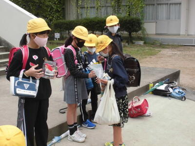 校長室で校長先生が受け取り、子供たちにお礼の言葉をかけました。