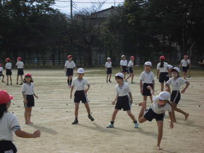 1・2年生でペアを組んで、移動したり遊んだりしました。2年生は上級生として1年生のめんどうをよく見たり、1年生は2年生をたよりにして楽しく遊んだりしました。