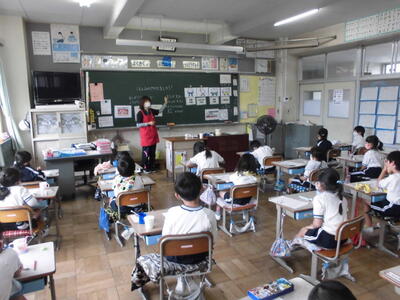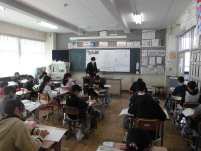 今年から小渕小に来た先生の研究授業がありました。授業を他の先生が参観してアドバイスなどをおこなうことで、学校としての授業のレベルアップを図るための研究です。