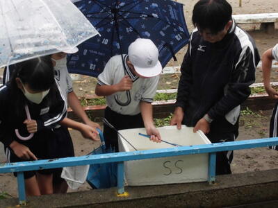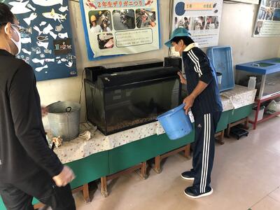 このあと、観察池に水を張り、別の水槽に移っている魚たちを戻します。多くの子供たちが、また今後も、この池の生物を観察してくれることでしょう。
