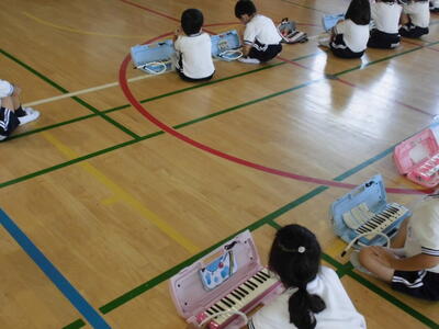 本日、1年生は、外部から講師の方をお招きして、鍵盤ハーモニカの講習会をおこないました。