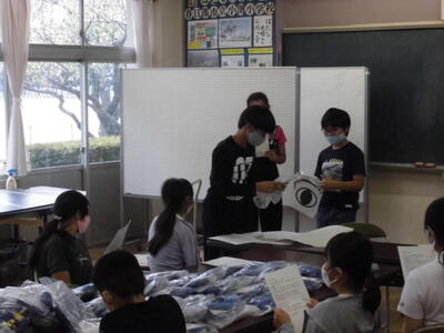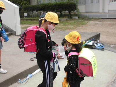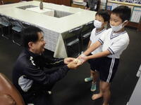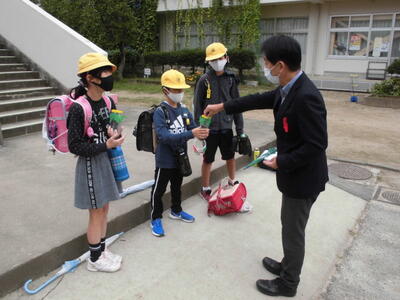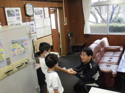 校長室で校長先生が受け取り、子供たちにお礼の言葉をかけました。