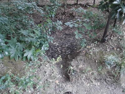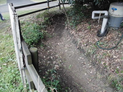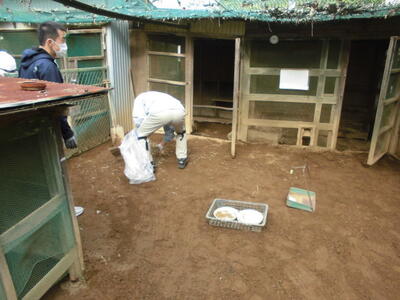 ( ↓ ウサギが掘った穴をうめたり、不安定になった柱を固定したりします。)