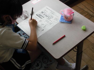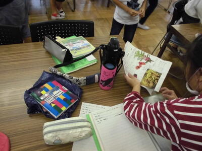 4年生の校庭の樹木のグループは、本日、天気がわるかったので、図書室で調べ学習のまとめや発表の準備などをおこないました。来週、校庭の樹木を観察する予定です。
