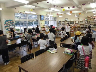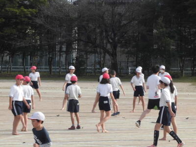 1・2年生でペアを組んで、移動したり遊んだりしました。2年生は上級生として1年生のめんどうをよく見たり、1年生は2年生をたよりにして楽しく遊んだりしました。