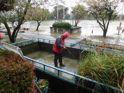 本日、校長先生が、仕上げを行い、水を張り始めました。