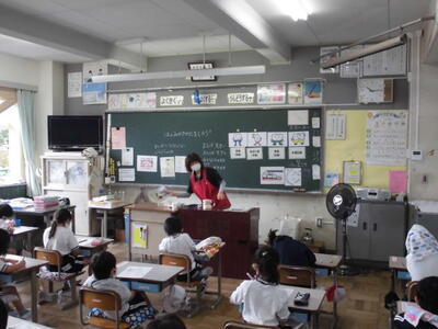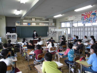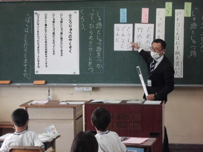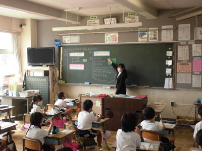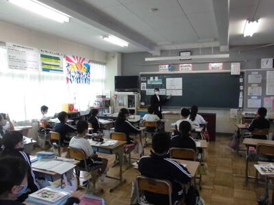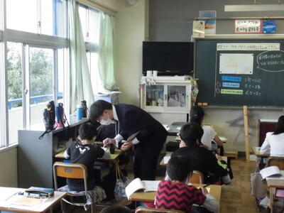 今年から小渕小に来た先生の研究授業がありました。授業を他の先生が参観してアドバイスなどをおこなうことで、学校としての授業のレベルアップを図るための研究です。