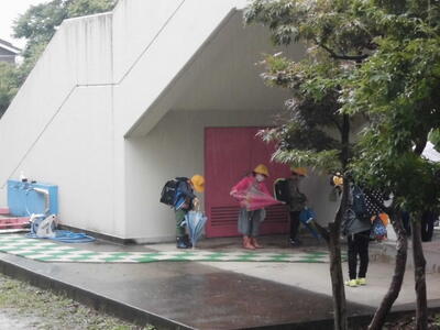 (雨の中なので、雨具を着用して作業をおこないました。)