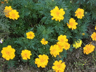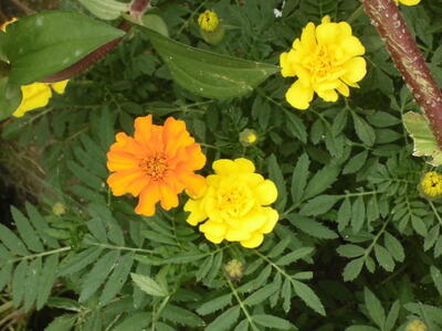 ( 協力して、たくさんの落ち葉や枯れ葉を集めました。)