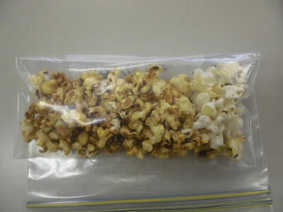 きれいにトウモロコシがはじけて、上手にポップコーンができました。
