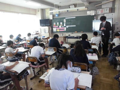 本日は教育実習の先生が、三週間の教育実習の集大成としての授業をおこないました。校内外から多くの先生が授業を参観して、アドバイスを受けることで授業力の向上につなげます。
