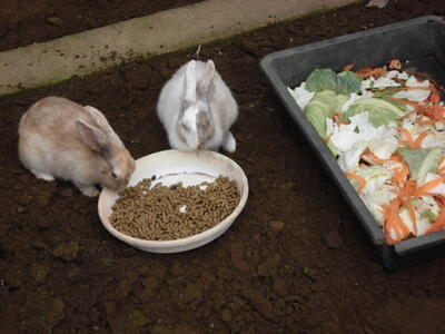 ( ↓ 最後にワラをしいて、ウサギにとって快適な環境ができあがりました。)