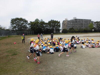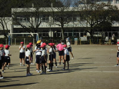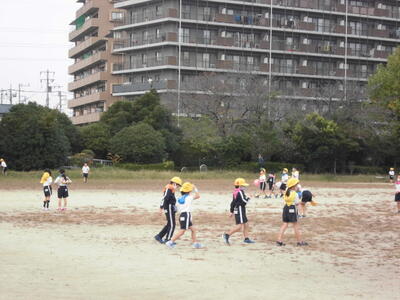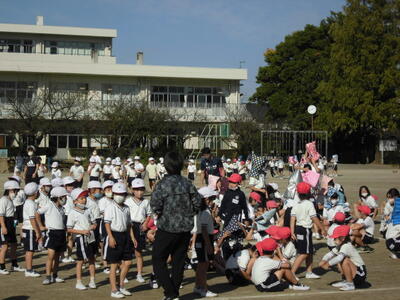 1・2年生でペアを組んで、移動したり遊んだりしました。2年生は上級生として1年生のめんどうをよく見たり、1年生は2年生をたよりにして楽しく遊んだりしました。