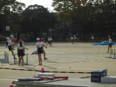 8:05 4~6年生は、陸上大会の種目の練習をおこなっています。