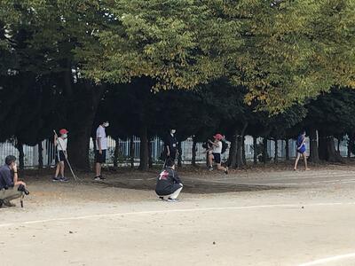 9:30 子供たちが、校庭に出てきています。この2時間目から大会が始まります。