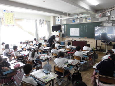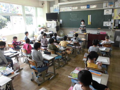 本日は、学習参観(授業参観)です。感染症拡大防止のため、一学期には実施できませんでしたので、今年度始めて教室での授業のようすを保護者の方に見ていただきました。ただ、いまだ感染症拡大は終息していませんので、本日の参観は保護者の方のみ対象(各家庭よりお一人ずつ)とし、また校内や教室での密を避けるため4校時と5校時に分散して来校いただきました。