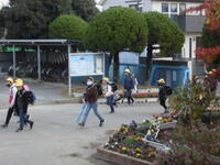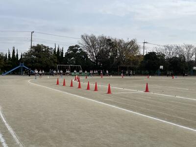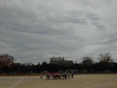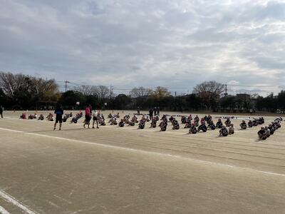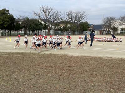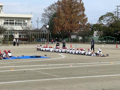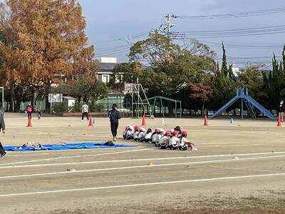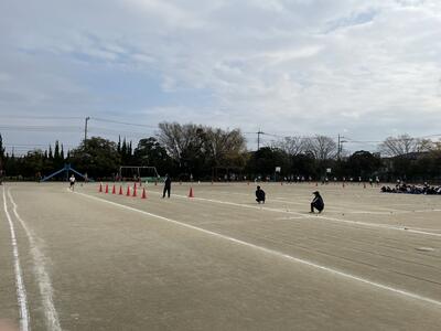 このあとの予定では、9:40~10:25 一・二年生、10:45~11:30 三・四年生、11:40~12:25 五・六年生の競技となります。