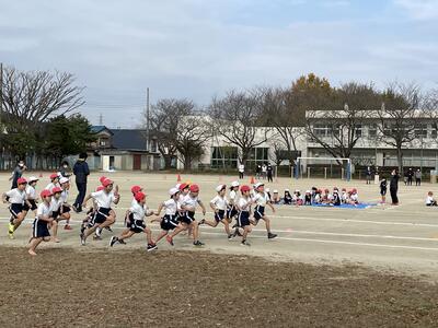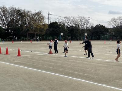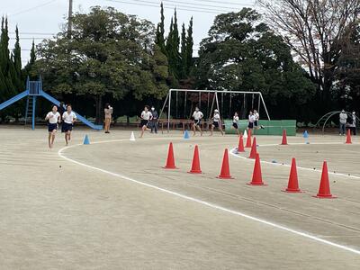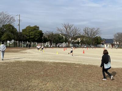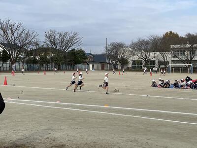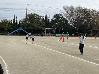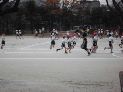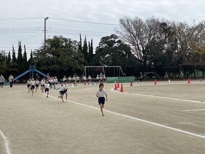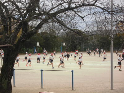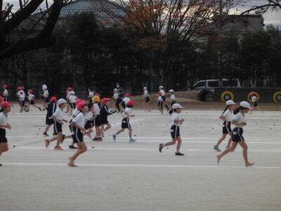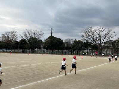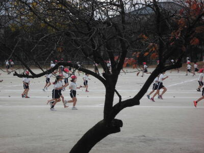 明日は持久走大会です。朝の一(いち)運動や業間では、校庭を走っている子供たちの姿があります。