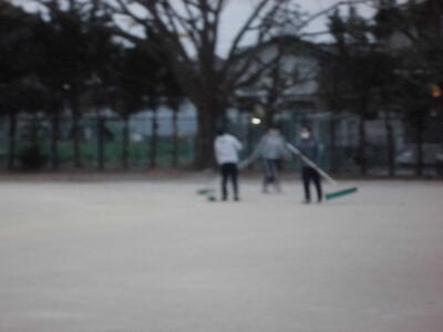 7:40 校庭の整備が終わりました。子供たちも登校してきています。