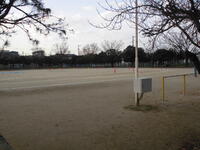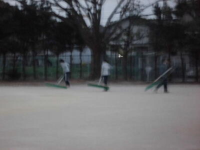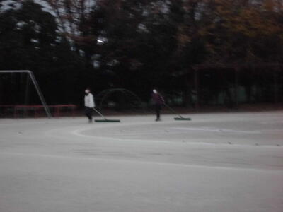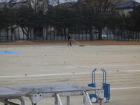 ( ↑ 放課後の校庭では、先生達で明日のためのグランド整備。)