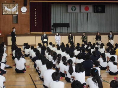本日は、学校や児童がお世話になっている方々をお招きして「感謝の会」を行いました。小渕小では、PTA役員の方々、おやじの会の皆様、日々の登下校を見守ってくださる交通指導員様やスクールガードリーダー様や交通安全ボランティアの皆様、栽培や図書や飼育や花壇のボランティア様、地域の自治会長様、民生委員・児童委員様、学校評議員様、こどもかけこみ110番の家の皆様、等々、たいへん多くの方々にお世話になっています。(生活科・サマースクール・ミシンのボランティアにも多数の方々に応募いただきましたが、今年は感染症対策のため活動は見送らせていただきました。応募いただいた皆様、ありがとうございました。) 「感謝の会」では、たいへん申し訳ないことに、すべての方をお招きすることはできませんが、それでも子供たちが手作りの会で、お世話になっている方々に感謝の気持ちをお伝えしました。(今年は、感染症対策のため時間や内容を縮小して、また体育館では児童の間隔をあけて換気しながら行いました。)