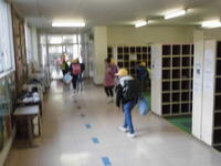 8:15 各クラスで朝の会をおこなっています。このあと、9:40~10:25一・二年生、 10:45~11:30三・四年生、 11:40~12:25五・六年生の競技となる予定です。
