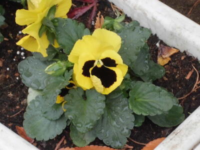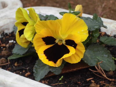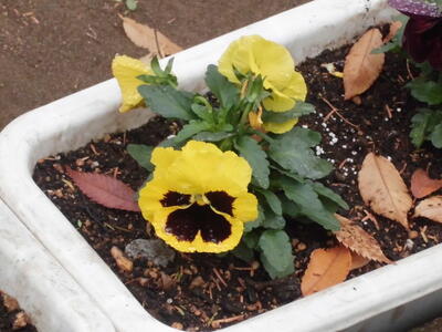 寒くなってきた現在も、学校では花が咲いています。正門付近には、花壇ボランティアの方々にもご協力いただいて植えたパンジーなどの花が咲いています。