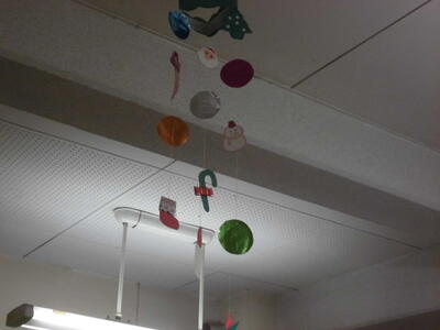 今の時期は、12月をひかえクリスマス・バージョンの飾りつけがされています。クリスマスをイメージした、サンタクロースやモミの木、トナカイやプレゼント箱などが飾られています。